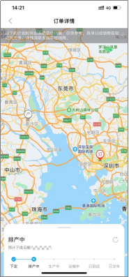流程可视-安心:新车物流过程可视化追踪,通过地图模式向用户展示。