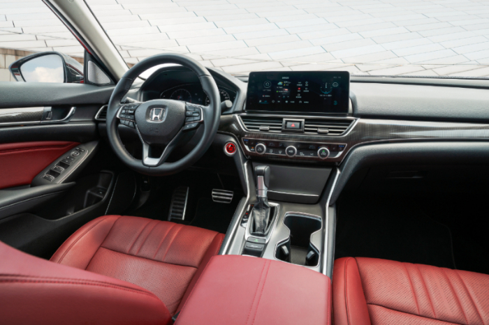 运动由外及里,坐进车内,映入眼帘的全新红色内饰,再度提升运动化视觉。一体化智能科技中控台,配备了10.25英寸悬浮式中控屏、无线充电等智能装备。全新雅阁(NEW ACCORD)还配备全车车窗一键式升降(带防夹功能),日常出行方便实用。锐·混动版本搭载专属的智能HUD抬头显示系统和SBW按键式电子换挡系统,展现科技魅力。