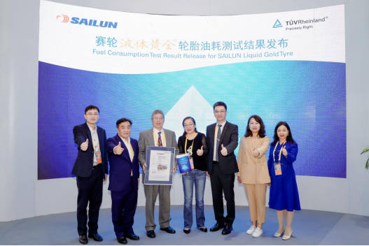 11月7日,国际独立第三方检测、检验和认证机构德国莱茵TÜV集团(以下简称:TÜV莱茵)在第四届中国国际进口博览会展位现场,对赛轮液体黄金轮胎的实车道路油耗测试结果进行了发布。赛轮液体黄金轮胎以优异的油耗测试数据获颁德国莱茵TÜV集团“节能先锋”奖。