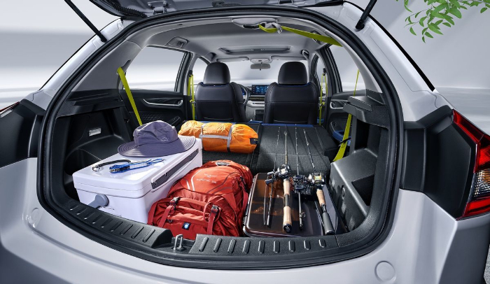 EX3功夫牛拥有超越同级的车身尺寸和空间,车长为4005mm,轴距达2480mm,车内乘坐5人也不会感到拥挤。400L的行李箱空间可放下3个20寸登机箱,后排座椅放倒后容积达900L。