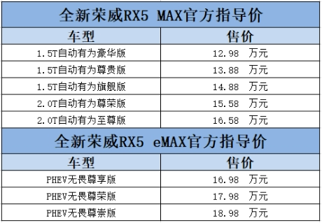 2021年12月23日,上汽荣威携手国潮动漫《斗罗大陆》,开启了一场国潮创新新车发布会。全新荣威RX5 MAX&全新荣威RX5 eMAX正式上市,两款新车共推出8款车型,官方售价分别为12.98万元-16.58万元和16.98万元-18.98万元。