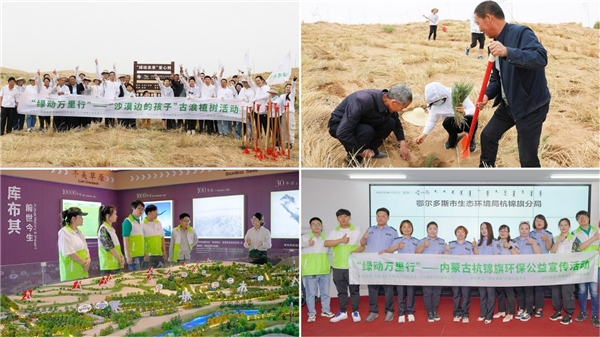 我国是世界上荒漠化严重的国家之一。植树造林可以防风固沙,是治理荒漠化的有效途径。“绿动万里行”也向植树防沙领域迈进。六五世界环境日,“沙漠边的孩子”公益植树活动再度挺进甘肃古浪。“绿动未来”志愿者携手“六老汉”传人们,沿着三代人的治沙足迹,实地感悟当代愚公精神,并在腾格里沙漠种下20,000余棵梭梭树,落成又一片“绿动未来爱心林”,为当地自然生态和沙漠边孩子的健康成长贡献力量。随后的第四站,平台带领志愿者走进地处库布齐沙漠南缘的内蒙古鄂尔多斯市杭锦旗,开展实境教育,通过参观学习、实地走访等形式,加深公众对基层环保工作和沙漠治理实践的认识,强化其防沙治沙的责任感与使命感。