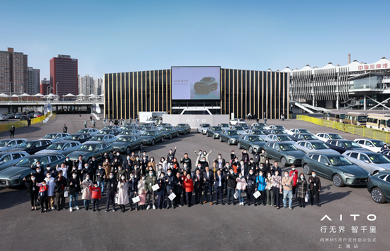 3月5日,AITO问界M5交付启动仪式在上海、广州、杭州、重庆等多个城市同步举行。即日起,AITO问界M5将在36个城市、100余家用户中心开启交付。