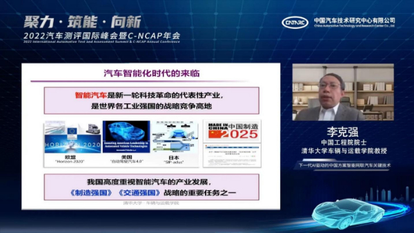 为顺应汽车产业变革新趋势,凝聚汽车测评新动能,助力汽车技术新发展,4月8日,中国汽车技术研究中心有限公司(以下简称:中汽中心)主办的2022汽车测评国际峰会暨C-NCAP年会在云端成功举行。中汽中心党委书记、董事长、总经理安铁成,中国工程院院士、清华大学车辆与运载学院教授李克强,中国消费品质量安全促进会副理事长、秘书长王昆,中国汽车工程学会副秘书长闫建来,中汽中心党委委员、副总经理吴志新、李洧,Global NCAP主席David Ward ,Euro NCAP秘书长Michiel van Ratingen,美国公路安全保险协会(IIHS)执行副总裁兼首席研究官David Zuby等国内外领导专家及5000余名技术代表出席峰会。