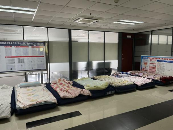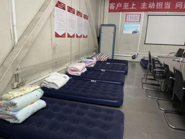 在严格防疫筛查和“两个闭环”管理前提下,公司制造、研发、安全、采购、营销、职能部门……有序组织党团员、骨干员工返岗。大家自带被褥、生活用品、干粮赶赴公司,扛起了抗击疫情、物资保障、安全巡查、有序生产的大旗,从凌晨忙到深夜,饿了就泡面,累了就轮个岗,席地而眠。静态管理期间,奇瑞公司各处大楼几乎灯火通明,睡袋、帐篷、地铺、车上……到处可见奇瑞人坚守的踪影。