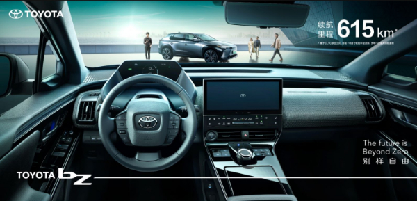 bZ,beyondZero,中文意为“超越零排放”,2021年10月末,丰田在海外对其正式发布。4月28日晚,当bZ4X在预售发布会上闪亮登场后,观者不禁发出感叹:“像一款概念车!”