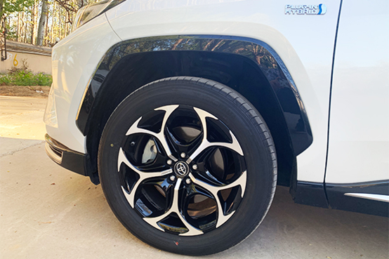 侧裙、车尾底部护板与前脸相呼应,采用黑色高光设计,再加上19英寸双色铝合金轮毂,进一步提升了整车的运动感。