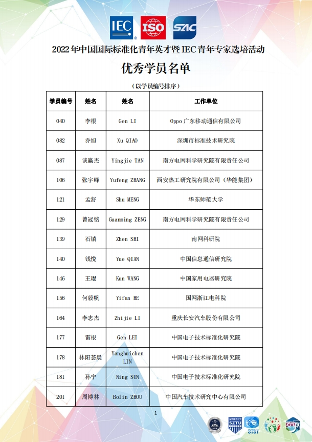 IEC(国际电工委员会)是三大国际标准化组织之一,此次活动遴选出的优秀学员,将成为下一步国际标准化人才的重点培养对象,也会再遴选其中的佼佼者代表中国参加IEC青年专家计划(IEC Young Professional Programme,简称IEC YP 计划)。