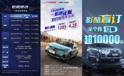 作为传祺全面向新能源转型的战略车型——影酷自亮相以来,在“一箱油”极限测试中,创下续航1711km,平均油耗3.2L/100km的成绩;并在一箱油穿过塔克拉玛干无人区过程中,取得续航1285km,平均4.28L/100km的长续航、低油耗表现。7月21日盲订开启之后,半个月内订单超一万台,彰显出消费者对影酷产品的认可。