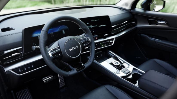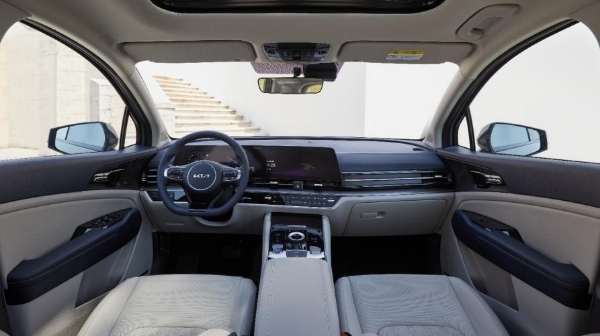 第五代Sportage狮铂拓界的内饰将突破性科技与豪华质感结合。整车长宽高分别为4,670mm x 1,865mm x1,680mm,轴距长达2,755mm,带来了宽适的空间,更显大气。符合人体工程学的中控台设计为驾驶员和前排乘客提供了更佳视野,中控台具有高端光泽感,提供存储、操作系统、触摸开关等功能,将便利与奢华融为一体。此外,针对中国用户的审美倾向,狮铂拓界采用隐藏式空调出风口,去除了繁杂设计,尽显简约大气,为驾驶者提供更愉悦的驾驶体验;双12.3英寸一体式曲面大屏,以驾驶者为中心,让车内空间更具整体感。搭配数字化的触控面板和旋钮式电子换挡让整体内饰科技氛围感十足。