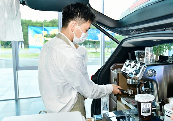结束6公里的嗨跑后,百人跑团来到了北京现代设置的后备厢集市体验区。库斯途咖啡车和联名动漫IP巧虎打造的炫彩库斯途,为跑团成员带来了乐享自在的生活方式。