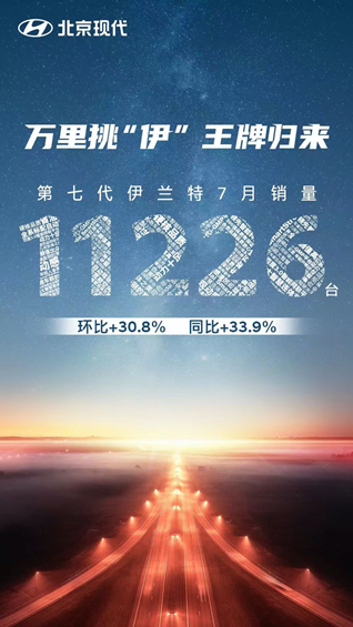 在创新改革的推动下,北京现代在今年也实现了销量的稳步回升。7月,第七代伊兰特取得了11,226台的销量成绩,环比增长30.8%,同比增长33.9%,与此同时伊兰特在中国市场的累计销量也超过了500万辆。