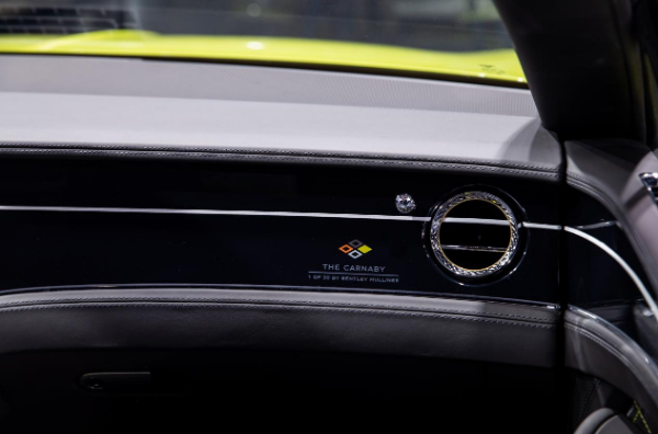 The Carnaby的设计灵感取自伦敦苏活区生机盎然、蕴含明快色彩的卡纳比街,宾利穆莱纳设计师们甄选荧绿色(Radium)、炫蓝色(Jetstream ||)、火焰橘(Orange Flame)和黑蓝宝石(Black Sapphire)四款生动配色融入设计,让这款超豪华运动旅行敞篷轿跑更添活力。
