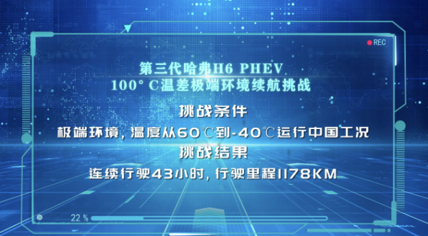 其中,哈弗H6超级混动DHT的PHEV车型在“温差100度续航挑战”试验中,经过43小时的不间断行驶,最终续航里程为1178公里。
