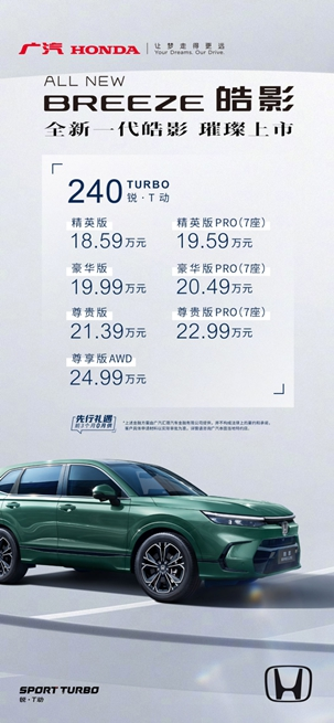 12月23日,全新一代皓影(ALL NEW BREEZE)上市发布会举行。新车共分为7个车型版本,市场指导价为18.59万元-24.99万元。