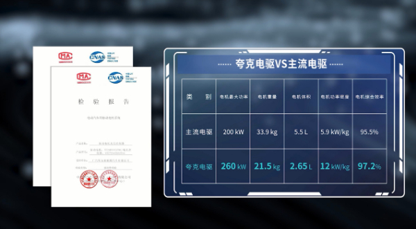 3月3日,埃安发布全新一代高性能集成电驱技术群——夸克电驱,能以极小的体积迸发出强劲的功率,电机功率密度高达12kw/kg。如手掌般大小的电机,就能带来超越V8发动机的超大马力。