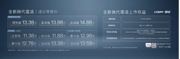 全新换代雷凌带来了多重购车礼遇,包括免息金融方案、置换补贴、悦享智联礼包。值得一提的是电池保障方面,广汽丰田提供不限年限、不限里程的免费维修或更换保障。