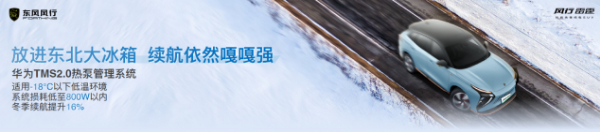 充分利用每一度电是新能源车的设计重点。风行雷霆带来了新车率先搭载的华为TMS2.0热泵热管理系统——这套系统不但系统集成度更高,也能高效智能调节车辆能量——使得车辆可以适应-18℃以下的低温环境,冬季续航提升16%。