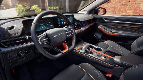 来到车内,黑橙潮流主题内饰与无级炫彩镭雕饰板夺人眼球,个性化镭雕饰板机甲纹理呼吸点亮,可随音乐律动。新车搭载同级唯一高阶智能装备,20.5吋超大智慧双联屏+雄狮智云交互系统,可支持自然语音识别、手机互联、远程控制及在线服务等多项功能,让人车交互场景再次升级。同时,第三代PEPS智能感应系统、高品质CNSL副仪表台、游艇式电子换挡、奔驰/捷豹同源全体感舒适皮座椅等多项全系标配,满足驾驶过程中的豪华感和舒适感。此外,新车还搭载了北欧级生态健康座舱,一呼一吸间尽是新鲜空气。