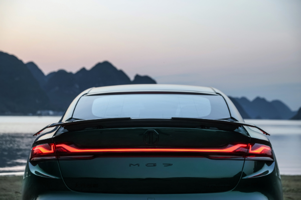 MG7的车尾设计再次凸显了运动特质,采用双边四出的排气布局,并加入贯穿式LED尾灯。作为一款轿跑车,它最亮点的设计在于配备了自适应可升降三段式电动升降尾翼,当车速大于100km/h时,尾翼会自动上升打开,
