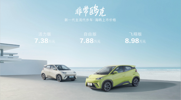 比亚迪海鸥上市,售价7.38万元-8.98万元