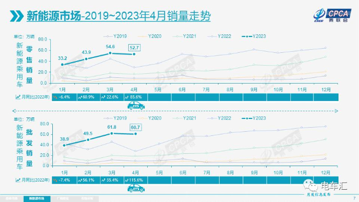 乘联会公布的今年4月份中国新能源乘用车市场数据显示,4月新能源乘用车批发销量60.7万辆,同比增长115.6%,环比下降1.7%;4月国内新能源乘用车的零售渗透率为32.3%,新能源汽车需求持续向上,渗透率进一步提升。