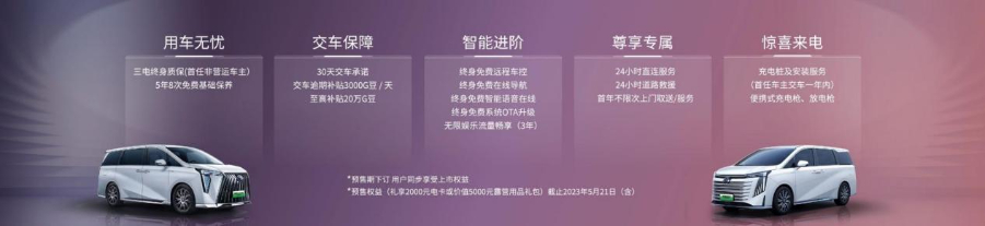 同时,广汽传祺更推出“十倍爱意”礼遇,2023年6月30号(含)之前下订的客户(增换购优先),可以享受520元抵5200元的超级权益,让美好智电生活触手可及。