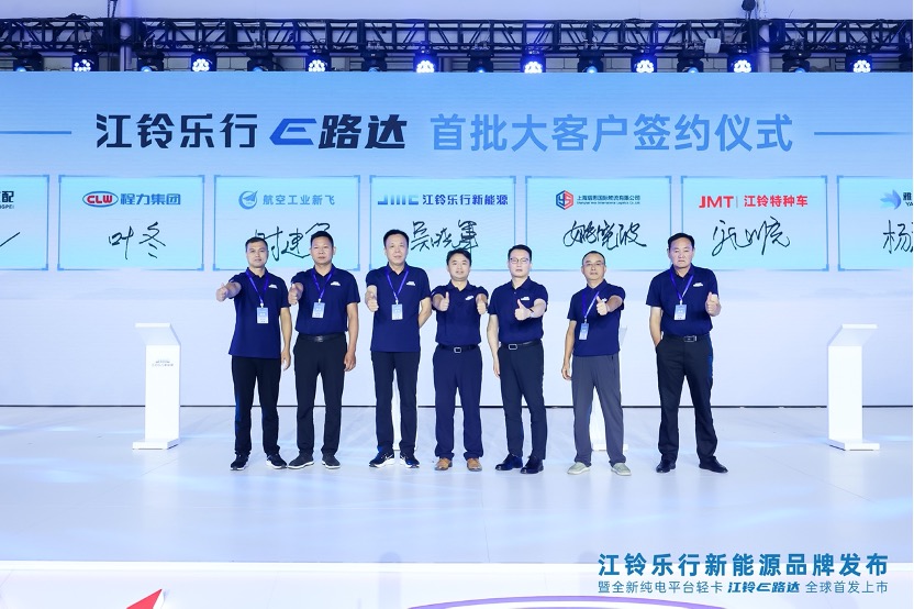 领先的技术实力,也让江铃乐行E路达备受业界认可。现场,江铃乐行E路达首批大客户订单交付及生态伙伴签约仪式成功举行,首批意向订单突破万台,这意味着江铃乐行新能源在成就客户的道路上,迈出了坚实一步。未来,江铃乐行新能源还将陆续推出覆盖智慧物流、绿色客运、任务·改装领域的优质产品,持续为客户创造美好生活赋能。
