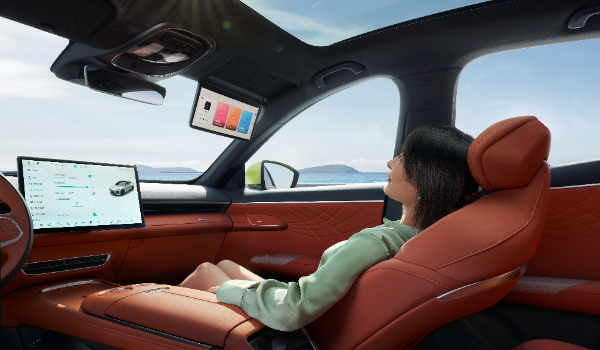 配置上,深蓝S7搭载前排双零重力按摩座椅,15.6英寸向日葵屏幕具有左右各15°的旋转功能。智能模式下,显示屏随场景偏转,可实现迎送宾场景。副驾区域创新性配备12.3英寸超感智慧屏,可配合副驾零重力座椅的倾斜角度调整,方便副驾乘员以舒适的躺姿观看屏幕播放内容,放松身心。除此之外,深蓝S7还搭载高通8155芯片车机系统、AR−HUD全息式增强现实系统、3D全息人脸登录等高价值配置。