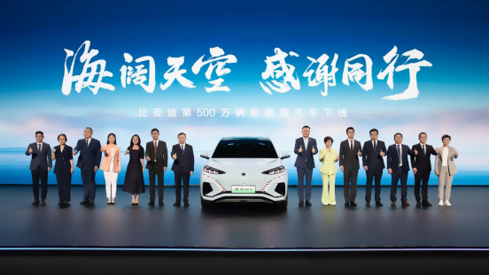 比亚迪成为全球首家达成第500万辆新能源汽车下线的车企,这份成绩属于比亚迪,更属于中国汽车品牌。王传福说,比亚迪将与同行携手并进,共同打造世界级汽车品牌,为全球汽车工业变革注入中国汽车力量,以领先科技助力全球实现绿色梦想。
