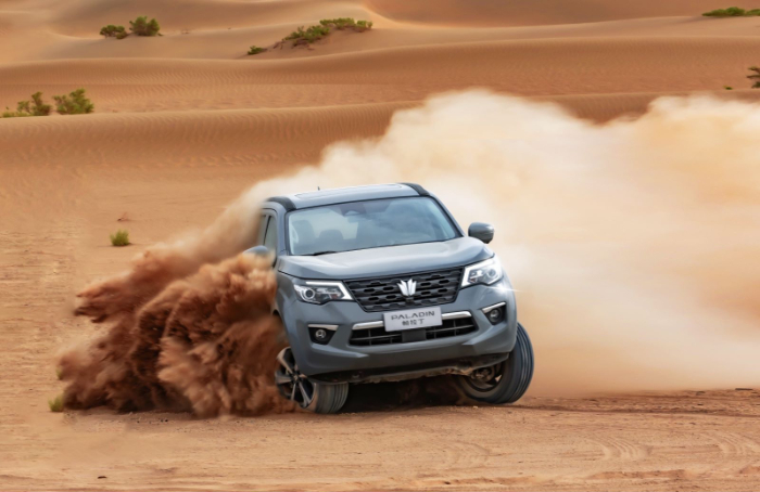 新帕拉丁装备了2.0T黄金动力及采埃孚8AT变速箱,输出最大功率168千瓦,扭矩最大360牛·米,共有常规、运动、雪地、沙地、泥地等7种全地形驾控模式;同时,该车具备非承载式越野底盘、增强悬架与电控前后差速锁+分动中央锁加持的专业分时四驱系统的结合,让扭矩分配更加灵活;该车具有坦克掉头模式,最小转弯半径仅为5.2m。强劲的动力输出、多场景的驾控模式以及“黑科技”的加持使新帕拉丁可以从容应对脱困、攀爬等极限场景,带用户玩转“不平”之路。