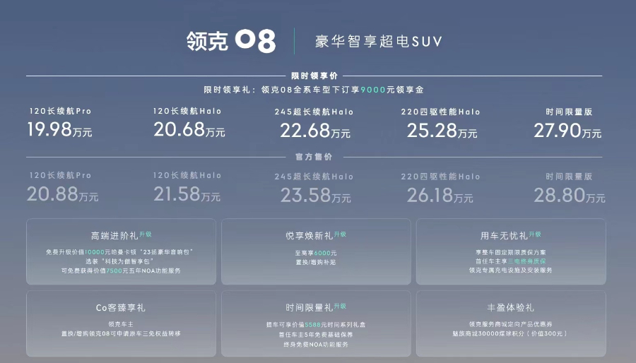 【领克08上市价格/权益】