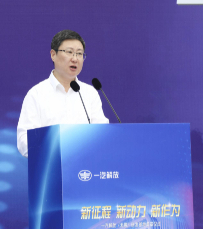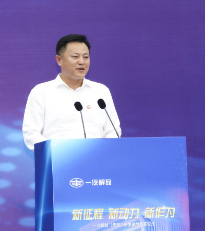 吴碧磊讲话。他表示,面对行业格局的深度调整、市场竞争的日益激烈、用户需求的不断变化,一汽解放以长春为全球研发总部,形成了横跨四国、覆盖九地的全球研发布局,全力向“中国第一、世界一流”的战略目标迈进。其中,一汽解放(无锡)研发基地是“四国九地”研发布局中的关键落子,是解放公司加快世界一流汽车企业建设步伐的重要举措,对解放发展具有重大意义。