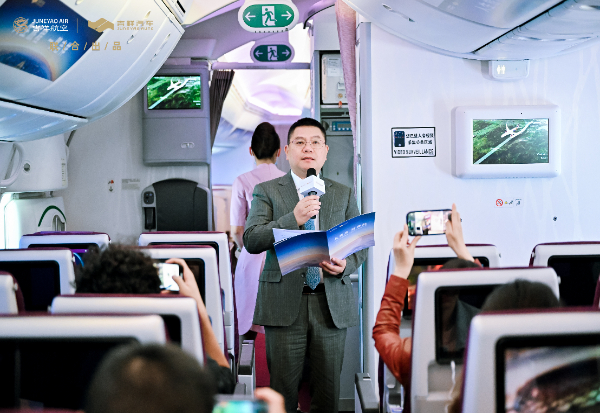 “那是不是就意味着,如果我是‘吉祥’大出行的用户,要从北京飞到日内瓦,起飞当日的早晨,我会收到一条飞行信息,之后,吉祥汽车会接我到机场,我在吉祥航空柜台办理登机,在飞机上,我享受着优质的吉祥航空服务,下飞机后,我将乘坐吉祥汽车到达酒店。刚才在飞机上,有一个电影我没有看完,可以在吉祥汽车上继续看完?” “2023吉祥大出行空中全球发布会”行前的启航峰会上,论坛主持人大胆畅想着“吉祥大出行”未来将实现的智慧出行体验。