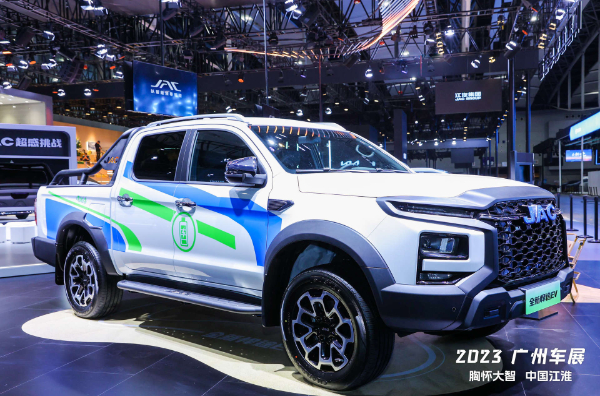 江淮皮卡以用户为中心,锚定“商乘并举、油电并进”的发展战略,完成燃油产品高效升级的同时,全面加速新能源转型。近年来,先后推出了江淮T6 EV、江淮T8 EV等电动皮卡车型,全新悍途PHEV、江淮T8REEV等混动皮卡车型也先后亮相。本次广州车展上,国内首款纯电四驱皮卡——全新悍途EV登场。