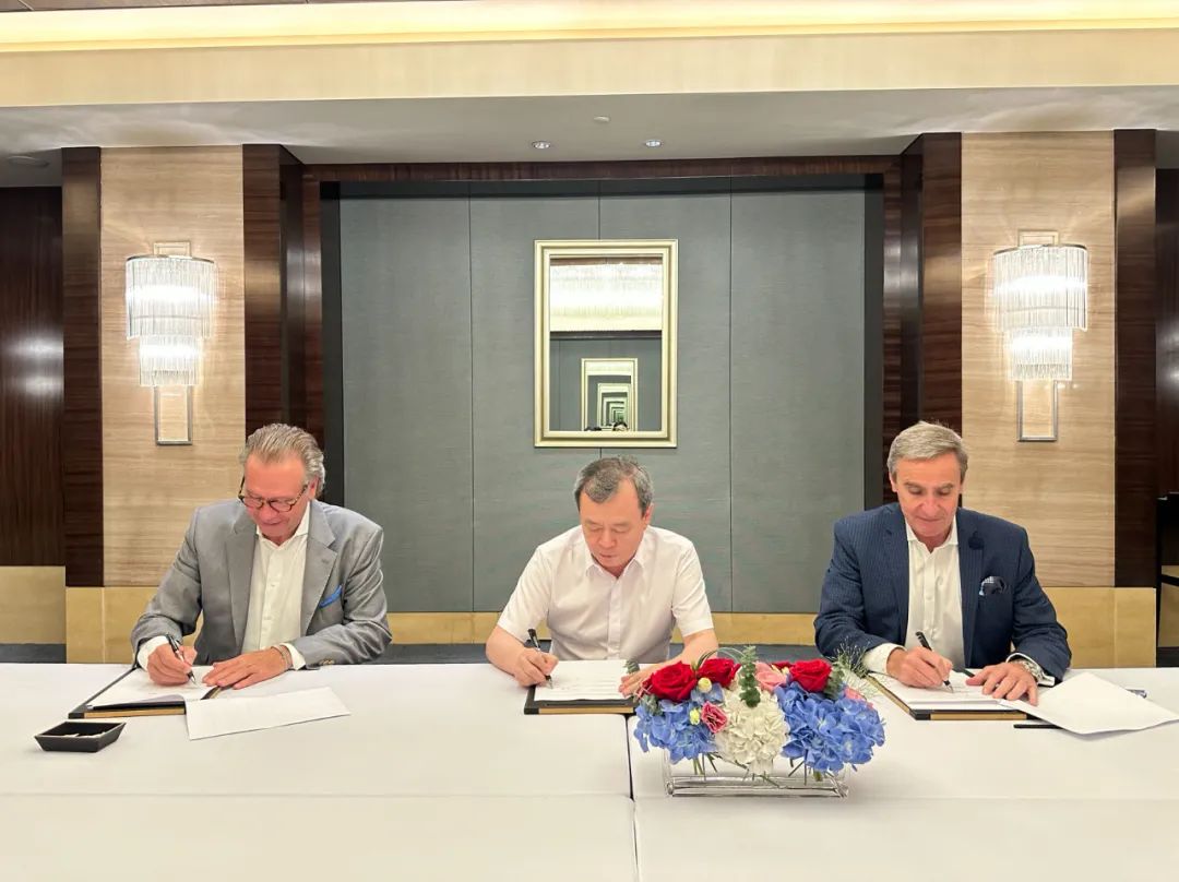中国汽车贸促会会长王侠与法兰克福展览公司高级副总裁Mr.Stephan Kurzawski、副总裁Mr. Michael Johannes签署战略合作协议