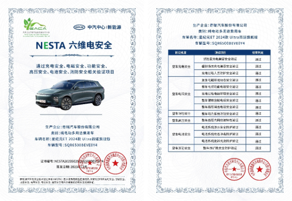 安全为本,“无惧寒冷与水火”,是星纪元ET对用户始终如一的承诺。新车实现同级最大涉水深度700mm+50mm,无惧夏日暴雨与积水路面,历经整车高温炙烤等六大维度严苛验证,成为首款通过“NESTA六维电安全”技术验证的新能源SUV车型,证明了其“无惧水火”的卓越电安全性能,将为用户提供更为可靠的电动出行体验。