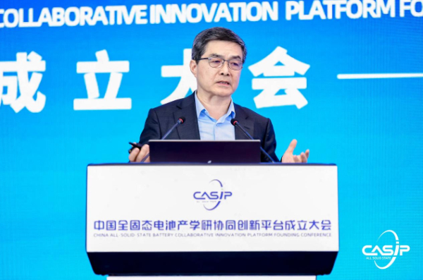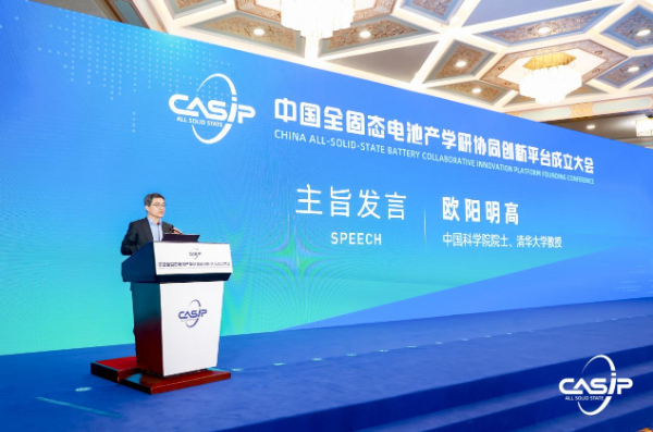 2024年1月21日,“中国全固态电池产学研协同创新平台”(CASIP)在北京举行揭牌仪式,来自主管部门、行业组织、企业、高校、科研机构以及金融与投资机构代表200余人参加会议。中国科学院院士、清华大学教授欧阳明高在会上作了题为 “全固态电池的研发现状与产学研协同创新的前景展望”的主旨发言,分析阐述了全固态电池的研发现状,以及对产学研协同创新的前景展望。