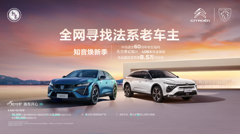 在直播期间神龙汽车宣布,3月10日前,东风雪铁龙、东风标致(含进口)老用户置换凡尔赛C5 X和408X,不仅可享受1万元基础置换补贴+旧车车龄1年抵3000元额外补贴、至高8.5万元置换补贴,还可以享受两成首付低息金融产品以及5年或15万公里整车质保;再加上专业二手车残值估价,让法系老车主的旧车真“换”真“值”。