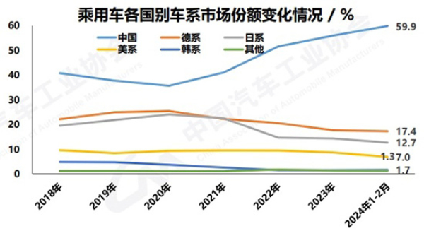 在主要外国品牌中,与上年同期相比,韩系品牌1-2月销量呈两位数增长,其他四大主要品牌销量均呈不同程度下降。“自去年以来,中国品牌乘用车市场份额出现持续快速增长,今年在高基数的基础上又有所提升,这也反衬出合资品牌面临的压力。”陈士华说。