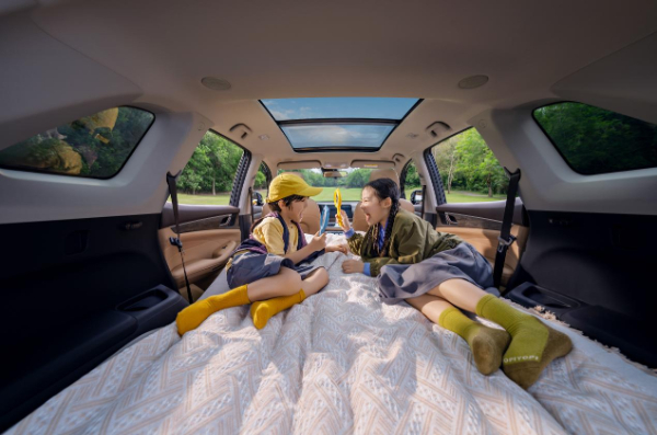 除了多出2座,足以满足全家出游,更重要的是大尺寸带来了更为宽适的驾乘和装载空间:其座舱有效空间长达3144mm,前排腿部空间长达917mm,二排腿部空间达到885mm,后备厢空间可扩展至1432L,座椅放倒后足以轻松营造一张“双人大床”。