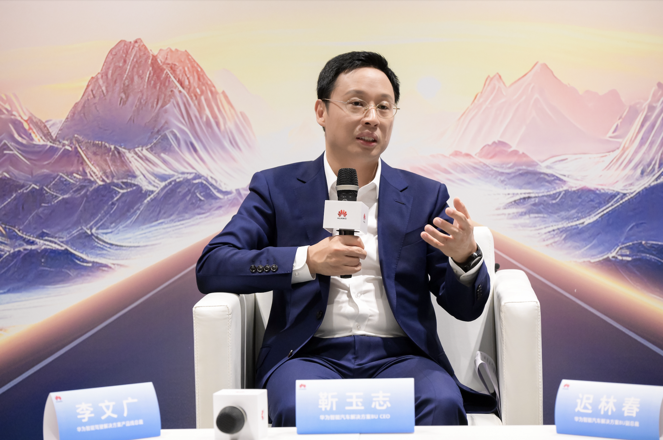 靳玉志、华为智能汽车解决方案BU副总裁迟林春、华为智能驾驶解决方案产品线总裁李文广参与了发布会后的访谈环节,并就行业定位、未来期许以及战略目标等问题进行了深入沟通。