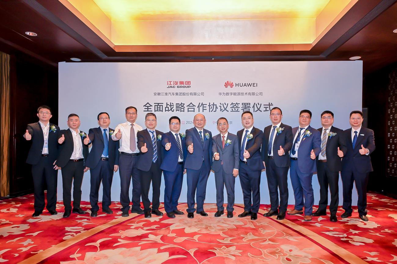 4月下旬,江淮汽车与华为数字能源在北京签署全面战略合作协议。这次签约也是双方前期合作的延展与再深化。双方将围绕新能源汽车的车、机、充三位一体,重点在新能源汽车车型/平台技术开发与应用、智能电动部件应用与开发制造、新能源汽车充电网络建设与运营、新能源汽车国际化等领域展开全面深入的战略合作。