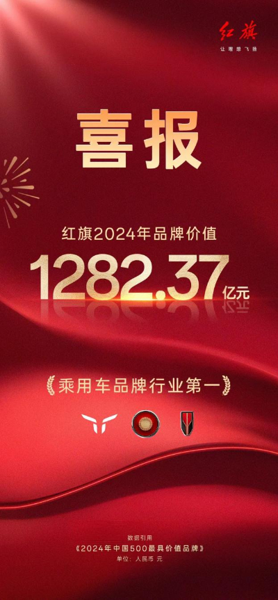 中国一汽两大自主品牌也获得佳绩。“红旗”2024年品牌价值为1282.37亿元,位列乘用车品牌行业第一;“解放”2024年品牌价值为1318.45亿元,位列商用车品牌行业第一。中国一汽、“红旗”“解放”的品牌价值均实现连续五年跃升。