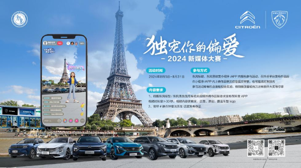 “独宠你的偏爱——2024新媒体大赛”的举办是东风雪铁龙、东风标致对法系知音情感需求的积极响应,也是一次与消费群体深度互动。神龙汽车希望通过2024新媒体大赛,加强与客户之间的连接,让更多人可以体验到东风雪铁龙、东风标致品牌带来的个性、时尚、优雅法式魅力。
