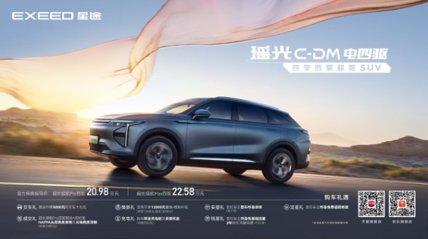 8月30日,奇瑞集团高端品牌EXEED星途(以下简称:星途)携全明星新能源阵容亮相成都车展。发布会上,星途面向全球首发雪豹四驱系统,首款搭载该技术车型——星途瑶光C-DM电四驱在万众期待的目光中亮相并同步开启预售,计划在9月底上市,这也是奇瑞集团首款四擎四驱高端混动SUV。此次共计发布超长续航Pro四驱、超长续航Max四驱两款版型,预售价分别为:20.98万元、22.58万元。