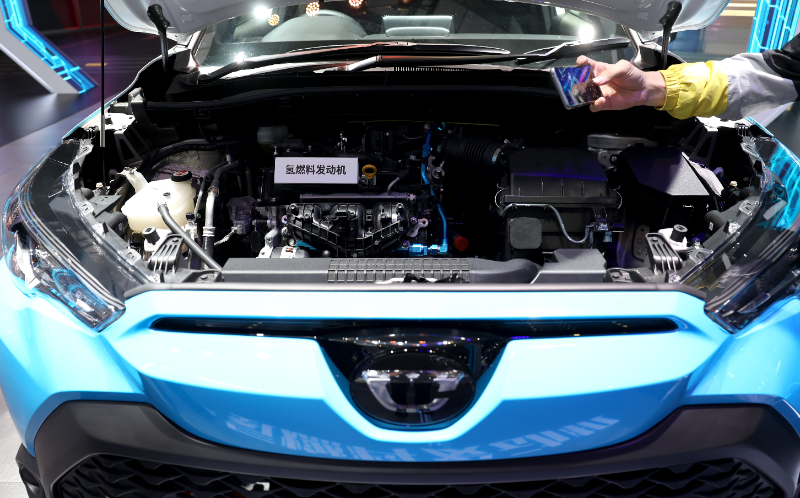 (资料图片)丰田汽车公司在2023年上海国际车展展出的氢能源汽车的发动机。新华社记者 陈建力 摄