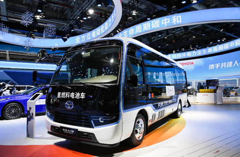 (资料图片)在2021年第四届进博会汽车展区拍摄的丰田氢燃料电池车。 新华社发(郝昭 摄)