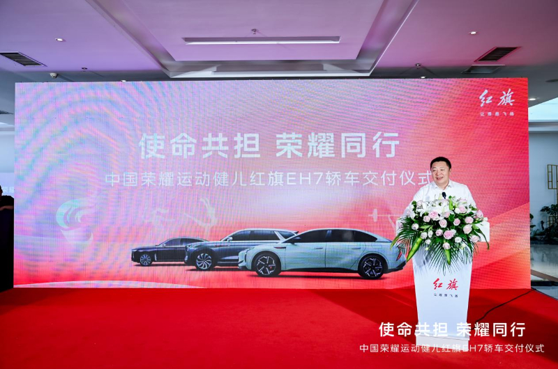 中国一汽总经理助理、红旗品牌运营委员会副总裁柳长庆在致辞中表示,向自强不息、为国争光的荣耀健儿致以崇高敬意,诚挚表达红旗品牌与中国体育事业使命共担、荣耀同行,共创发展新篇章的坚定决心和宏伟愿景。