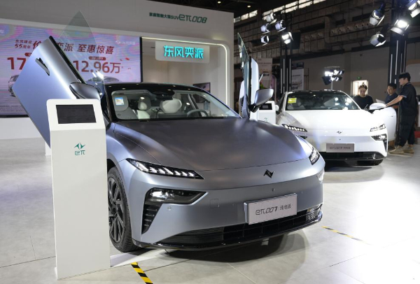 9月16日在车展上东风奕派展台拍摄的“eπ007”。新华社记者 蒲晓旭 摄